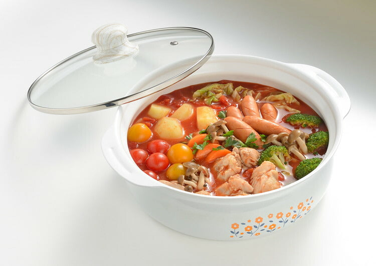 かわいいレトロ柄と内面ホワイトのお鍋でキッチン・お料理が映える