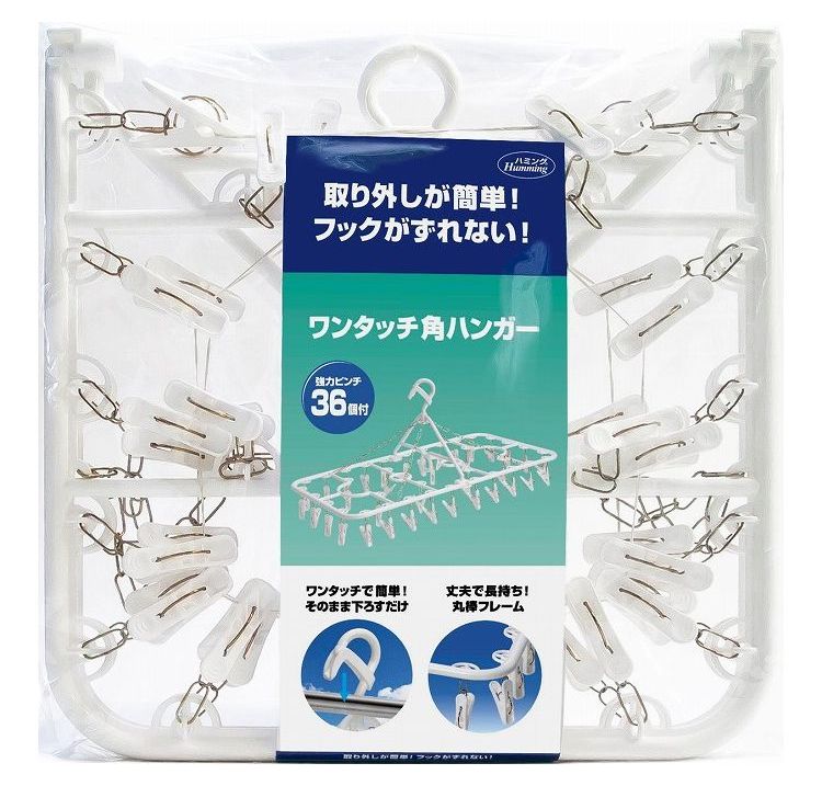 ニッコー ワンタッチ 角ハンガー 強力ピンチ 36個付 物干し台 ピンチハンガー ホワイト(代引不可)