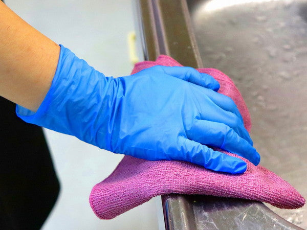 強度・耐油性・耐薬品性に優れた、ニトリル手袋の使い捨てグローブ。引き裂きや引っかけに強い。目立ちやすいブルーで、食品加工時の異物混入リスクの低減に役立つ。