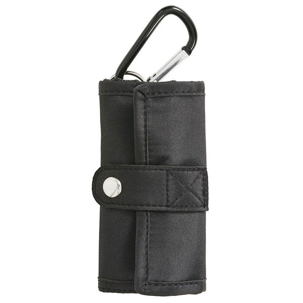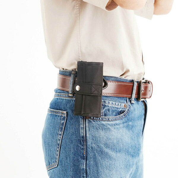背面ベルトでベルトループに取り付け可能。カラビナ付き。