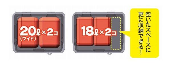 一般的な18Lの灯油ポリタンクが2個、ビールケース(大)が1個収納できます。