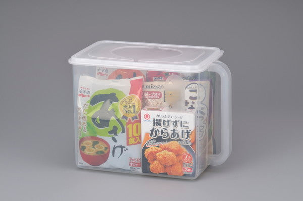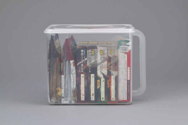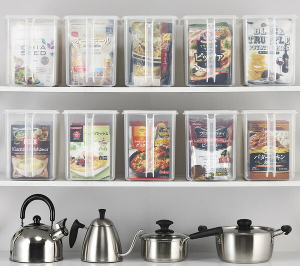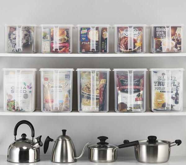 大きな取っ手付きで、高い所でもスムーズに出し入れできるストッカー。家族の水筒をまとめて収納したり、お弁当箱やスープジャーを収納したり。乾物やおかずの素、レトルト食品や調味料のストックを収納したり。キッチン収納の強い味方です。キッチンだけでなく、洗剤やペーパー類のストックを入れたり、シャンプーやコンディショナーのストックを入れたり、バスルームやトイレなどでも使えます。