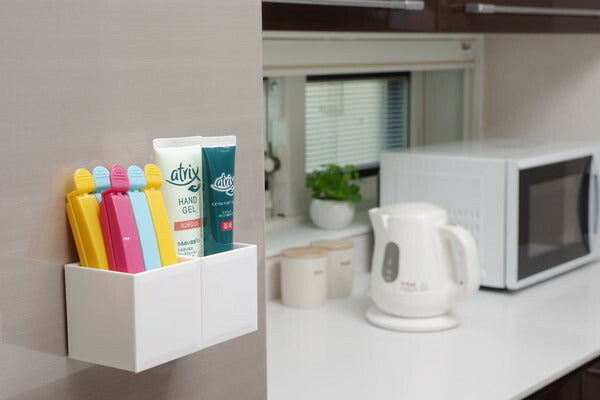 マグネットで壁面にくっつき、底板を外しても使えるキューブ型の小物入れ。約6cm四方のサイズ。