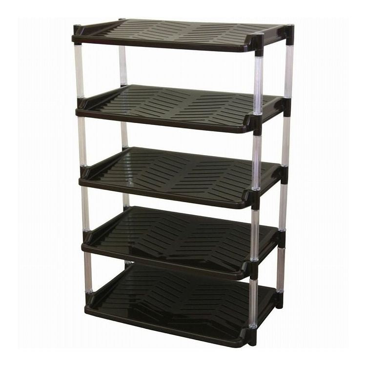 軽量で組立が簡単なシューズラック。靴やスリッパが1段に2足入り、10足収納できるワイド5段タイプ。