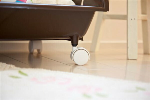 別売りの「積み重ねバスケット」と「積み重ねバスケットスリム」専用のはめ込み式キャスター。※キャスターはホワイトのみで、シリーズのバスケットに統一して使用します。