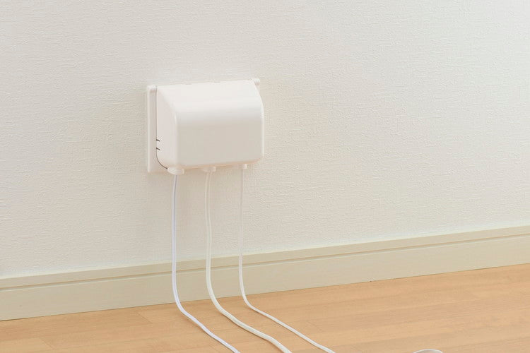 マルチメディアコンセントプレートをカバーして、お子様のいたずらによる引き抜きや感電、ショートを防ぐ。