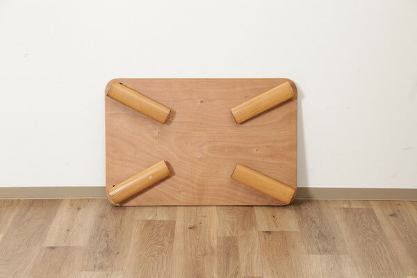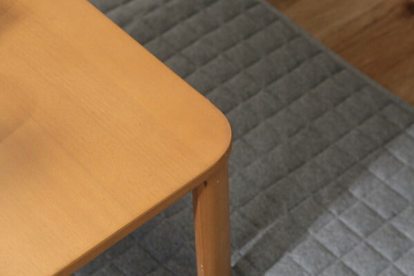 脚部にはフローリングでも安心して使用できる、クッション材が付属しています。また、天板の角は丸みを帯びた作りになっており、お子様のいるご家庭でも使いやすいデザインです。