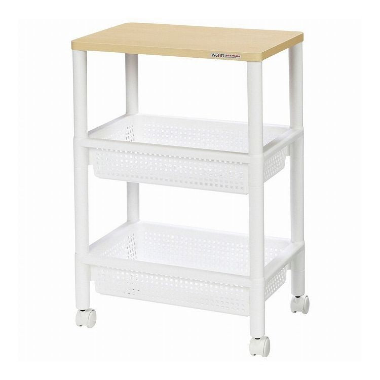 不動技研 ウッドテーブルワゴンWTW3S ホワイト (キッチン収納 サイドテーブル)(代引不可)
