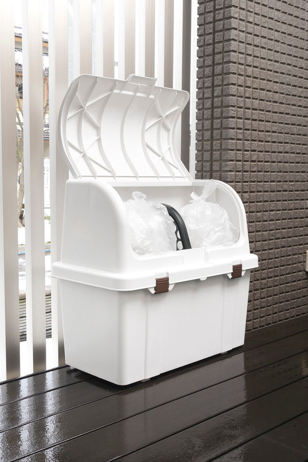大容量タイプの分別ごみ箱。ゴミ容器以外にも、園芸用品や工具などの屋外収納庫としてもご使用いただけます。
