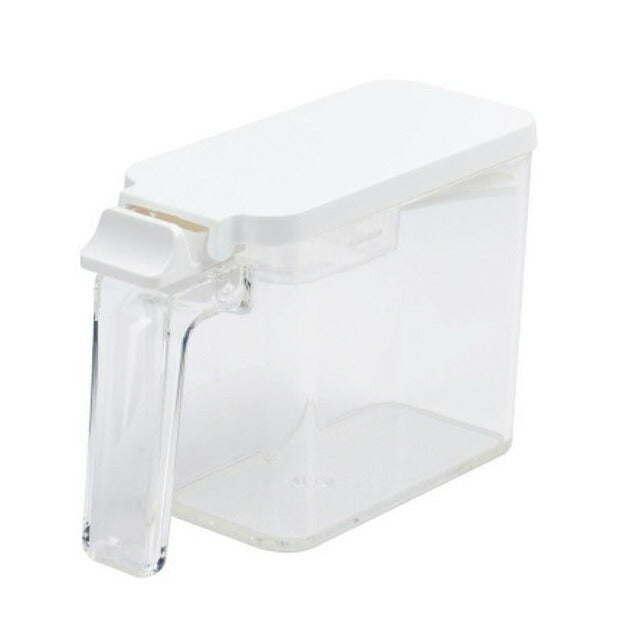 材質:本体・フタ/ポリスチレン すり切り板・スプーン/ポリプロピレン プッシュレバー/ABS樹脂 バネ・パッキン/シリコーンゴム