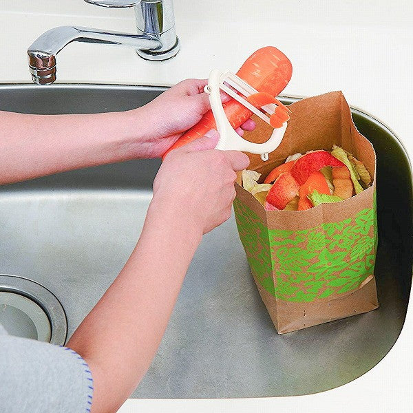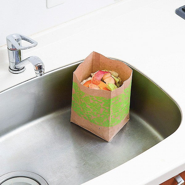 水切り穴付きで、捨てる時は紙袋ごと中身を絞って水切りできます。三角コーナーの洗浄の手間を省けます。