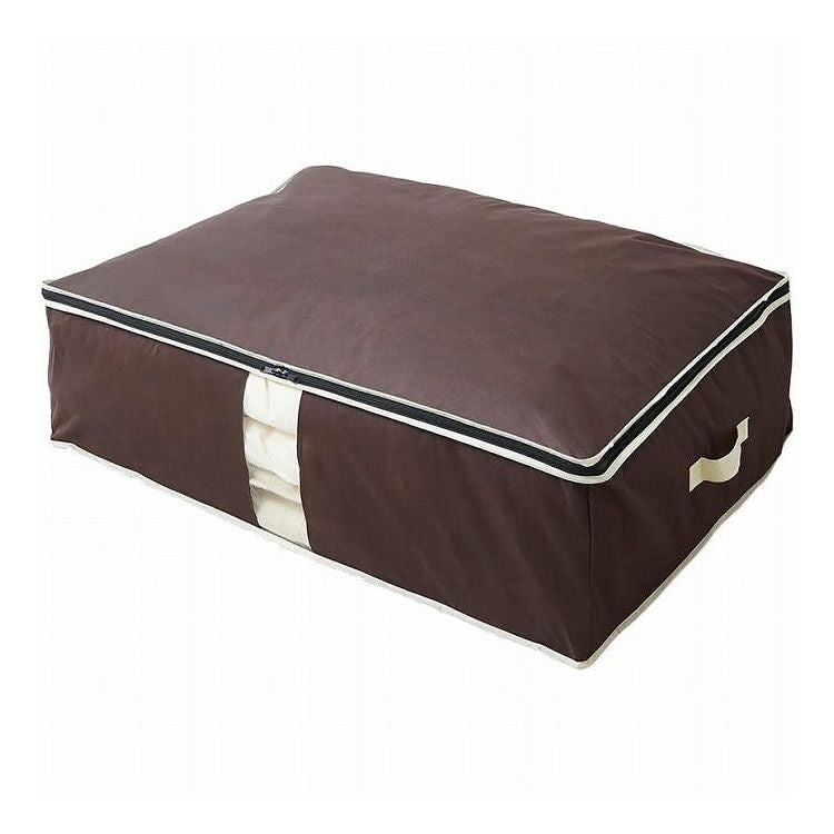 炭加工シートを挟んだ不織布により、気になる汗のニオイを消臭!ふとんなどの寝具にニオイがつくのを防ぎ、通気性も抜群です。※炭加工シートは底面(キルト面)に使用しています。両サイドには丈夫な持ち手付き。不識布製なので軽く、持ち運びがカンタンです。