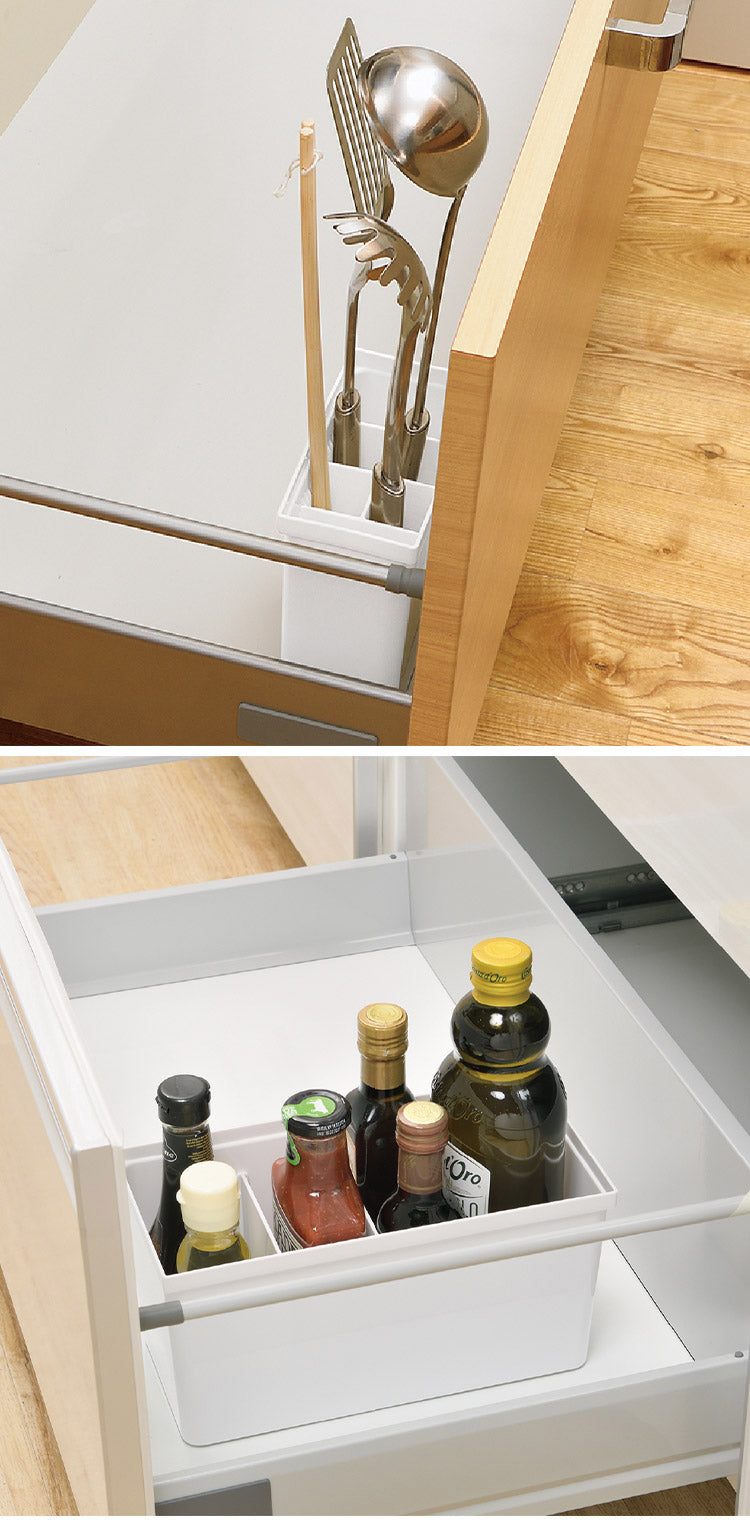キッチンツールを取り出しやすい位置に立てて収納できます。