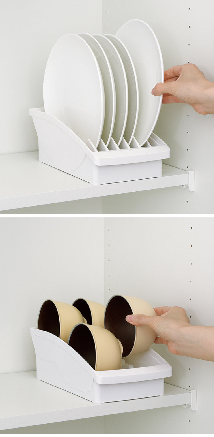 食器棚の整理整頓に。食器類を立てて置けるシンプル収納。