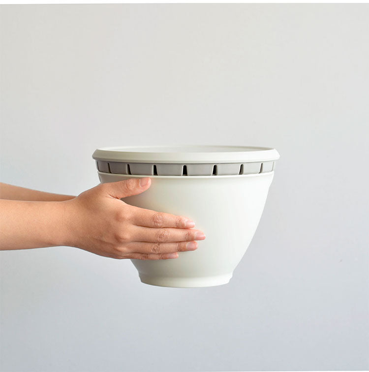 電子レンジ・食洗機で使えるフタ・ザル・ボウルのセット。食材のあふれを防ぐ流水穴付き。