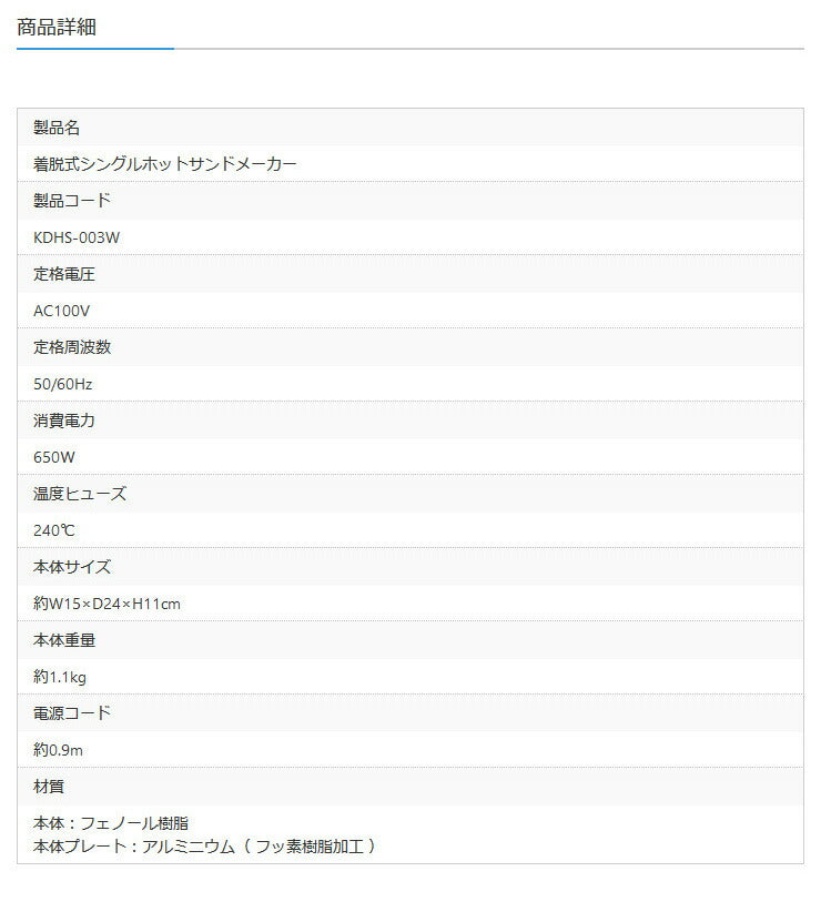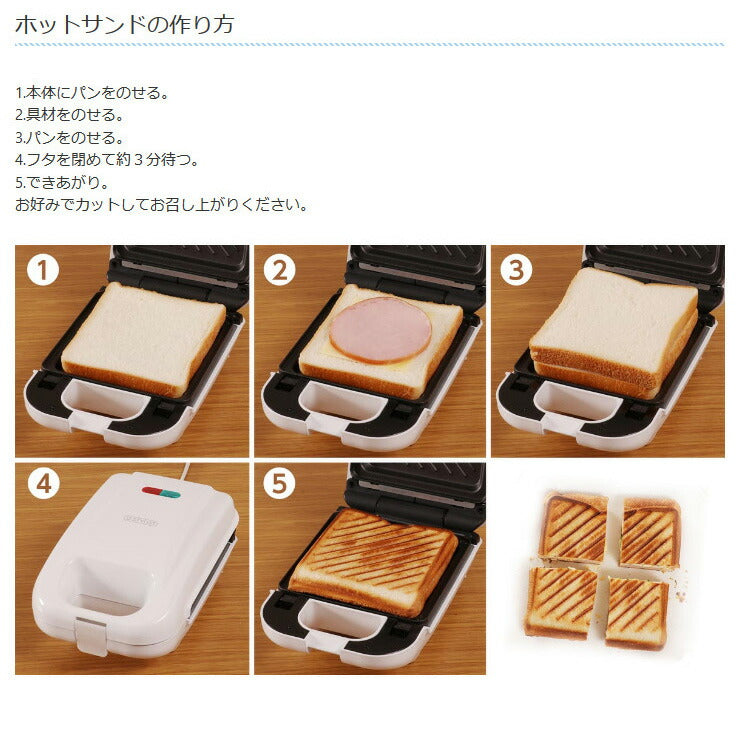 着脱式 シングル ホットサンドメーカー ホットサンド 耳まで 6枚切り対応 厚焼き 1枚 洗える プレスサンドメーカー 調理器具 キッチン コンパクト 朝食 お菓子 スイーツ KDHS-003W D-STYLIST