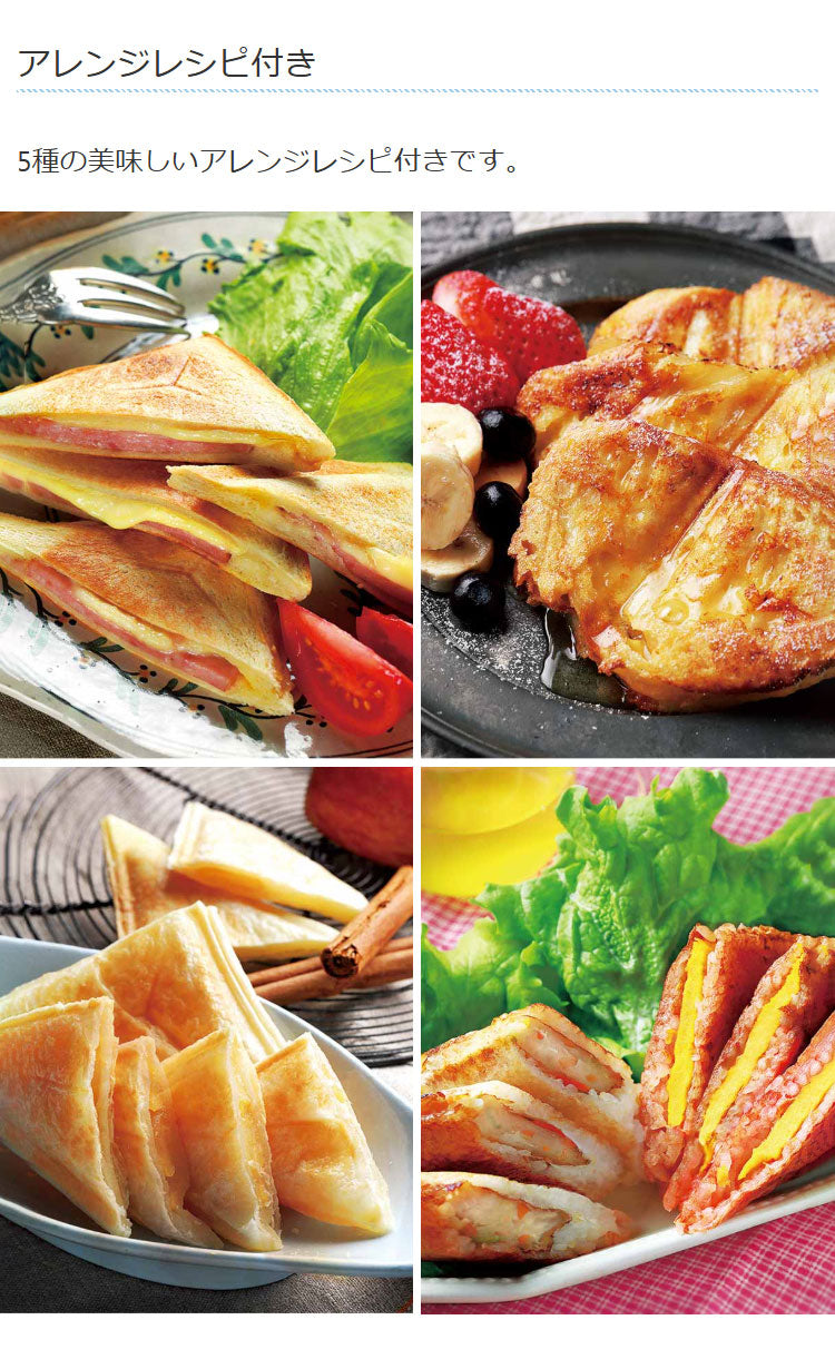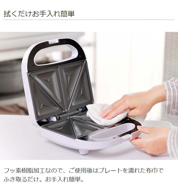 2枚焼きホットサンドメーカー 両面焼き 食パン 2枚 両面焼き お手入れ簡単 アレンジレシピ付 家庭用 プレスサンドメーカー ホットサンド ライソン KDHS-022W