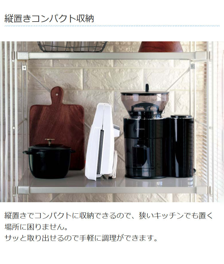 立てて収納できるので、狭いキッチンでも置く場所に困りません。サッと取り出せるので手軽に調理ができます。