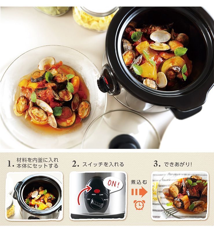 スロークッカー 1.5L KDPC-15AV 電気調理鍋 電気鍋 電気グリル鍋 電気調理器 1人~2人用 一人用 卓上 家庭用 煮込み鍋 一人暮らし