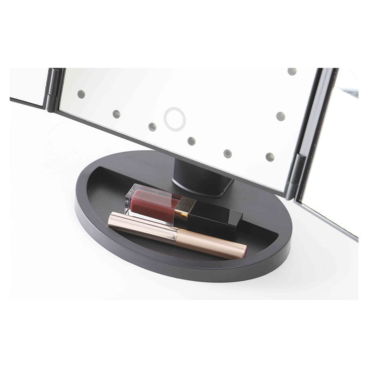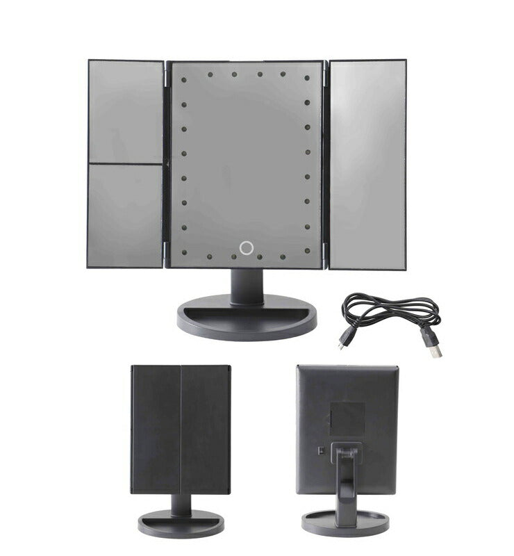 卓上ミラー ライト付き LEDライト付き メイクアップ用ミラー 三面鏡 角度調整可 拡大鏡 ミラーライト USB電源式 乾電池式 メイク 化粧鏡 メイクミラー スタンドミラー ブライトミラー KSBY-004B