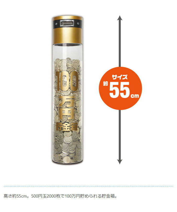 100万円貯まるバンクDX 500円玉貯金 100万円 貯金箱 KTAT-006D 液晶表示 残高自動計算 全硬貨対応 貯金 小銭