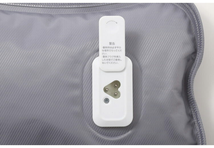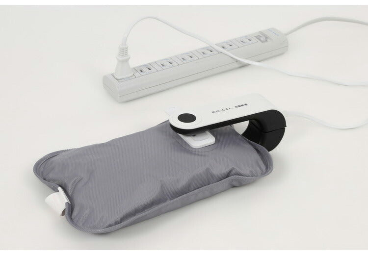 本体が65℃になると蓄熱が自動で停止。使用時は充電プラグを外して、湯たんぽ本体をカバーに入れるだけ!