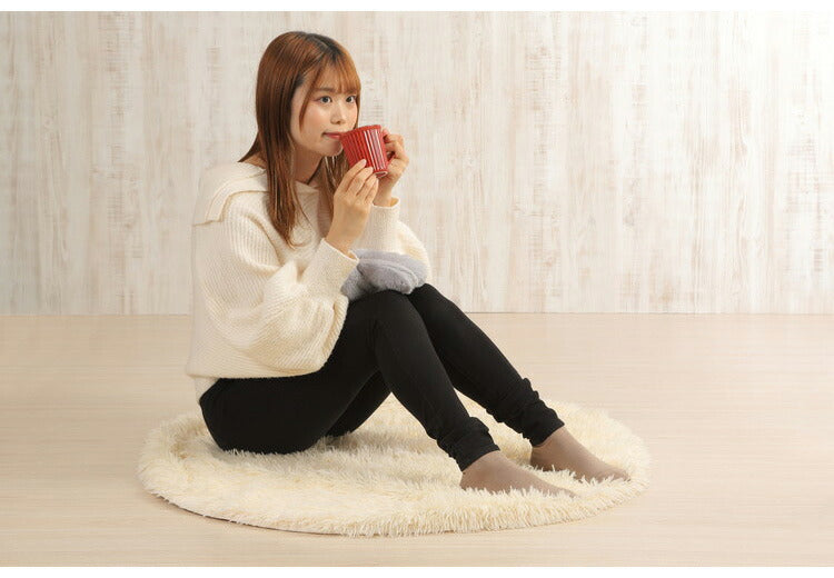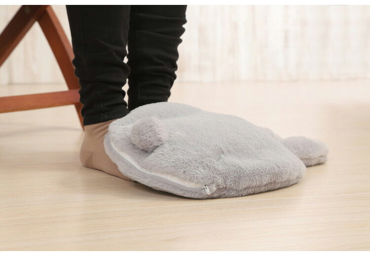 ・湯たんぽカバーは肌触りのいいもふもふ生地を採用。カバーの両サイドから手を入れられる仕様になります。両手は暖かく包まれた、使い心地抜群