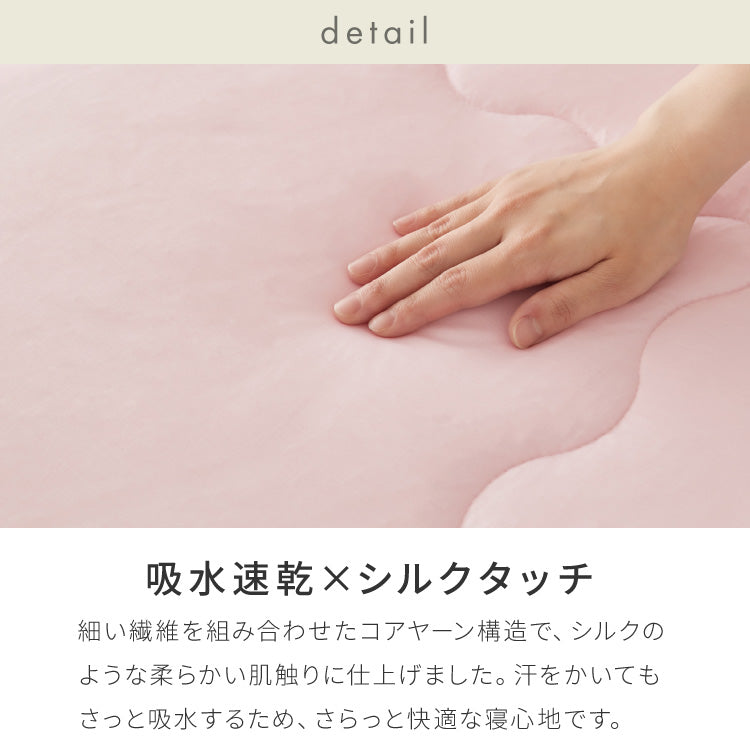 汗をかいてもさっと吸水するため、べたつかずさらっと快適な寝心地です。