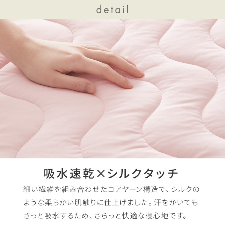 with、core、ウィズコア、敷パッド、敷きパッド、ベッドパッド、敷き布団、コアヤーン糸、コアヤーン繊維、接触冷感、持続冷感、冷感、夏、吸水、速乾、枕パッド付き