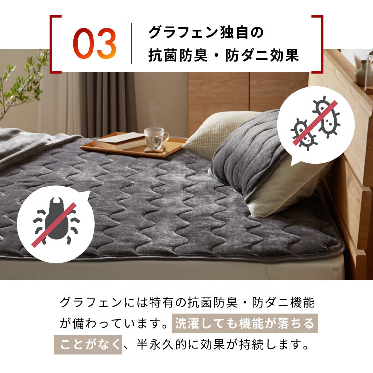 グラフェン素材、炭素素材、グラフェンフランネル、敷パッド、ベッドパッド、除電、保温、保湿機能、洗濯可能、丸洗い、とろける生地、グレー、ベージュ、かわいい、ふわふわ