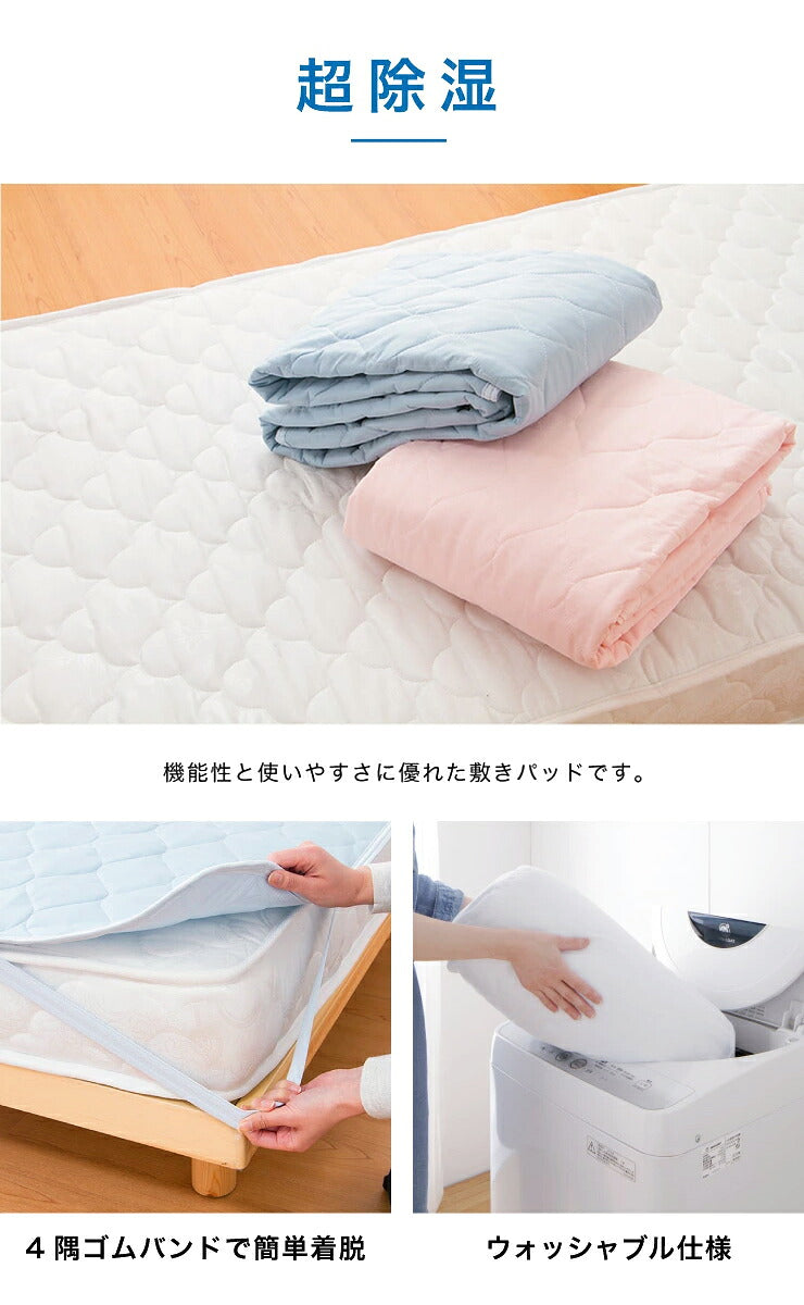 敷きパッド、接触冷感&除湿敷きパッド、シングル、ベッドパッド、敷パッド、ベッドマット、冷感マット、除湿マット、接触冷感、除湿