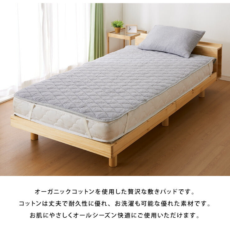 敷きパッド シングル 綿100% オーガニックコットン 洗える ウォッシャブル コットン 低ホルムアルデヒド 天然素材 ゴムバンド