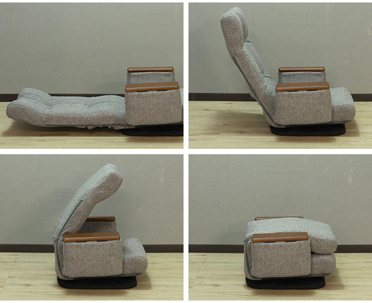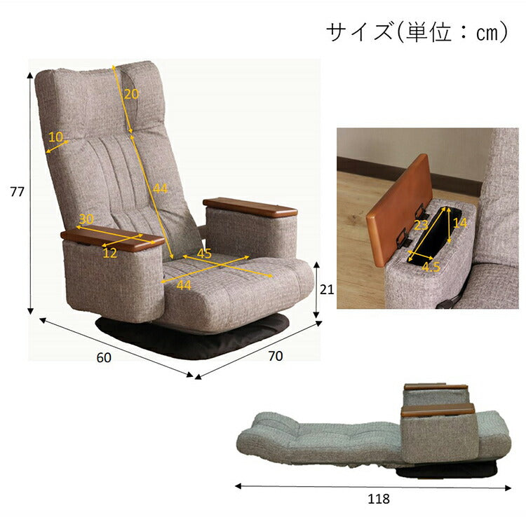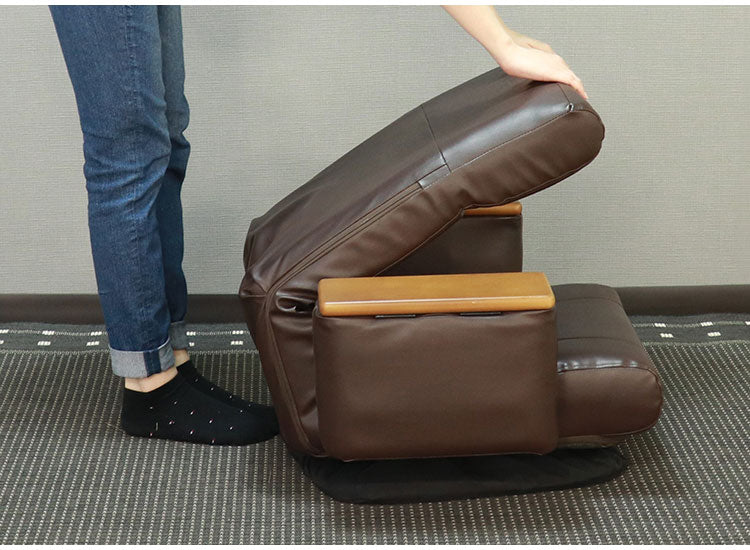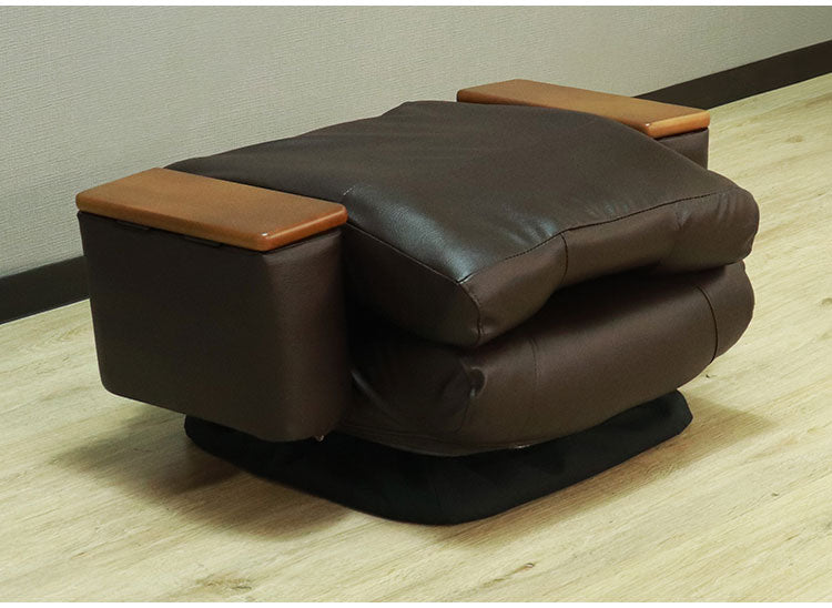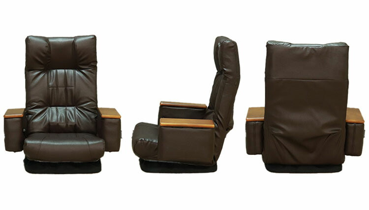 座椅子 回転座椅子 ポケットコイル 肘掛け付 リラックスチェア フロアチェア リクライニング 天然木 合成皮革 レザー張り 1人掛け リモコンポケット 敬老の日在宅勤務 リモートワーク(代引不可)
