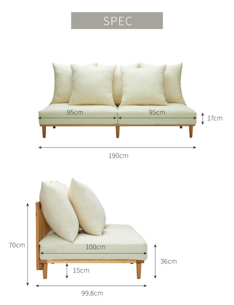 [ソファ]幅190×奥行99.8×高さ70cm(座面高36cm)