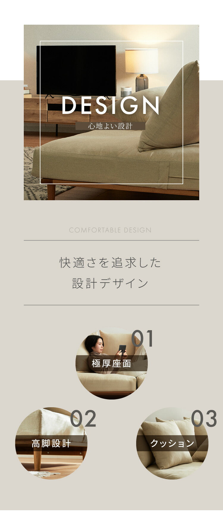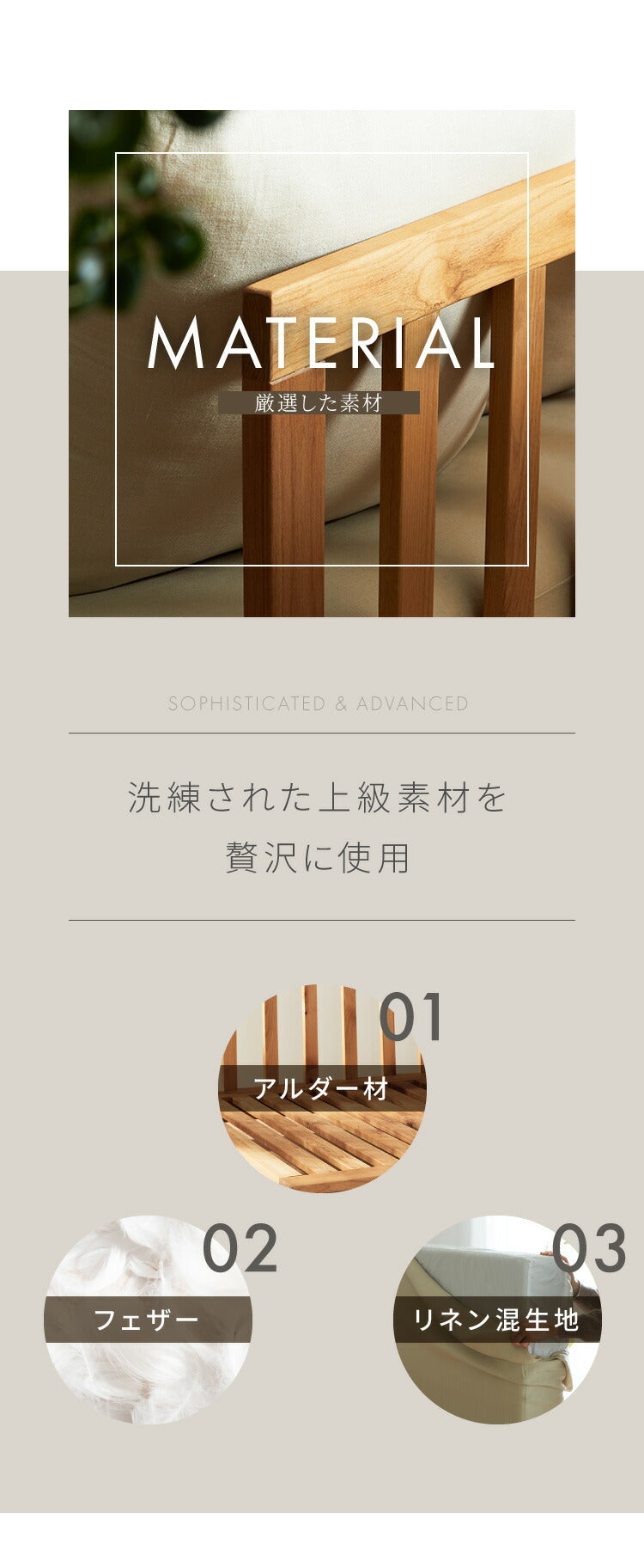 ・クッションは羽毛を使用して程よい弾力と柔らかさが包み込むような座り心地を実現