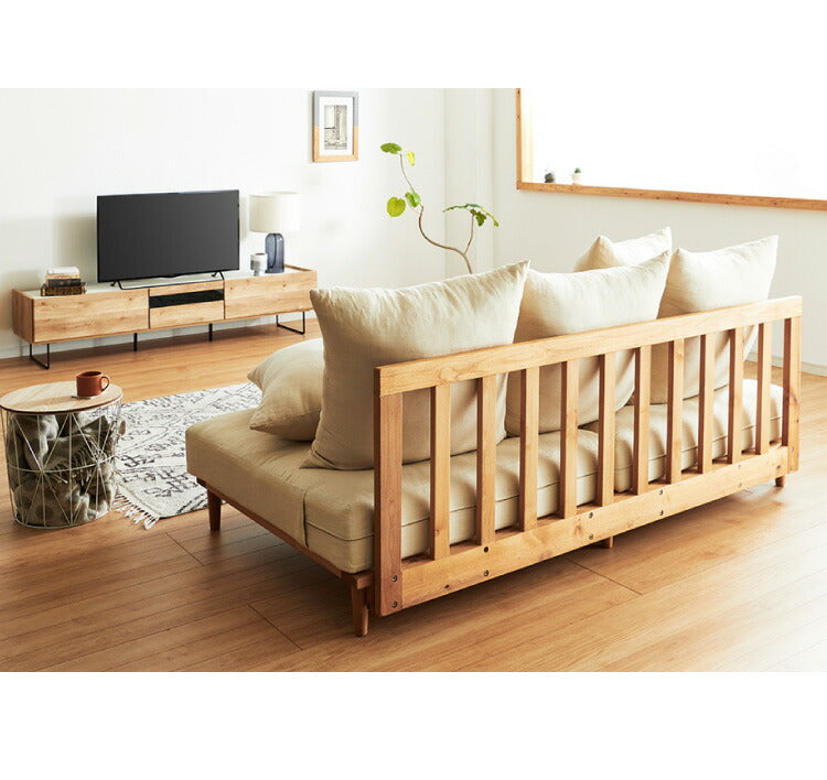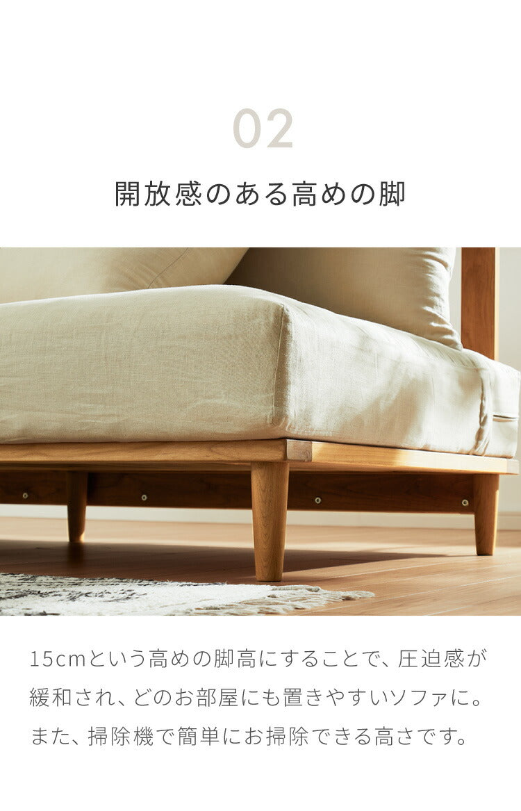 ソファベッド 3人掛け 幅190cm Ferris 天然木 アルダー材 リネン 麻 フェザー 羽毛 クッション付 カバー洗濯可 おしゃれ 北欧 ナチュラル ゆったり 広々 幅広 リビング ソファーベッド フェリス (代引不可)