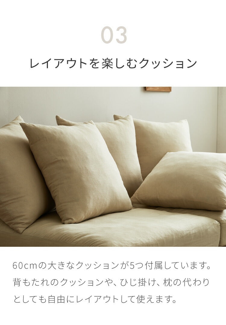 ・5つのクッションで枕や背もたれと自由な使い方が可能