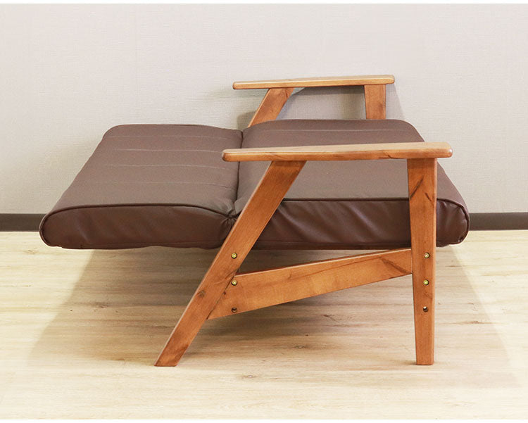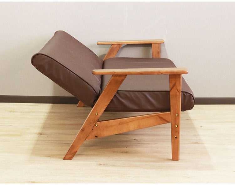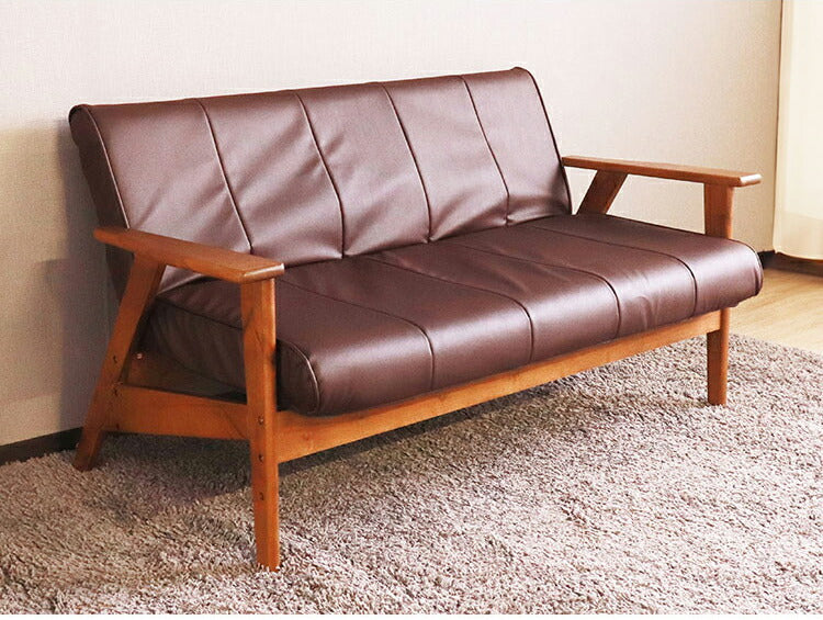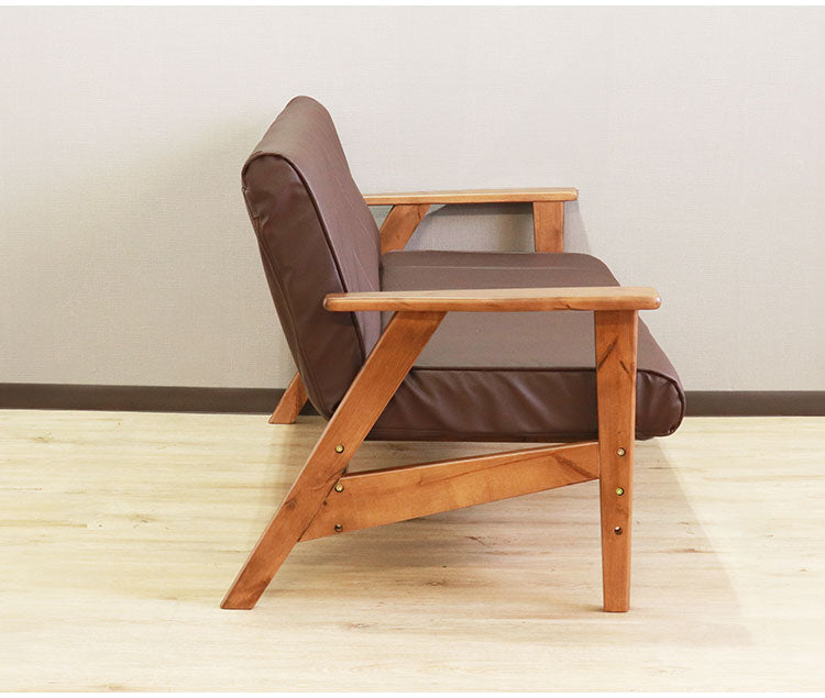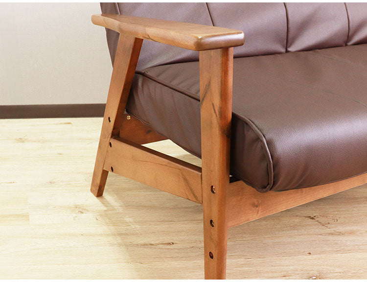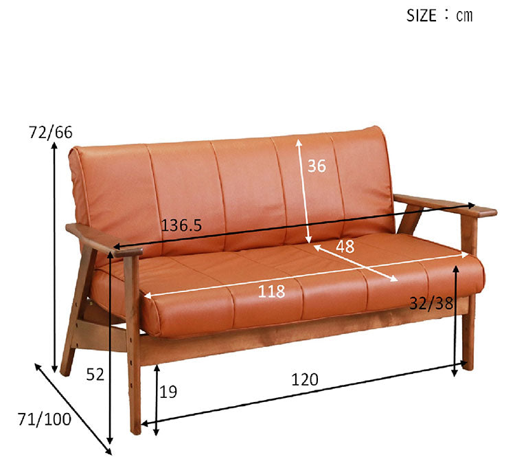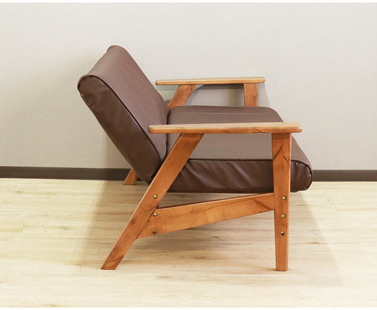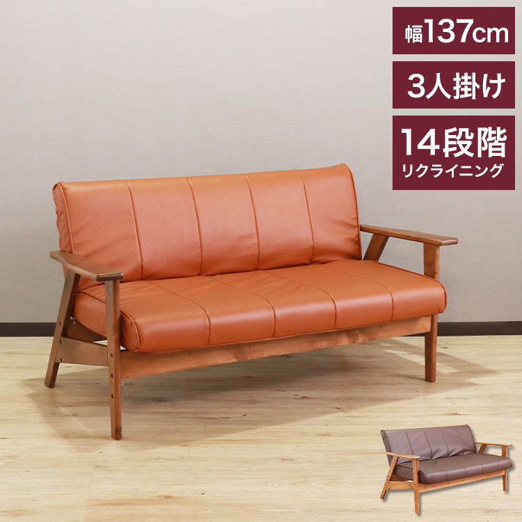 リクライニングソファ ソファ 三人掛け 2段階 リクライニング ローソファ 天然木 木肘 合成皮革 レザー ポケットコイル シリコンフィル ファブリック ダブルクッション おしゃれ モダン シンプル(代引不可)