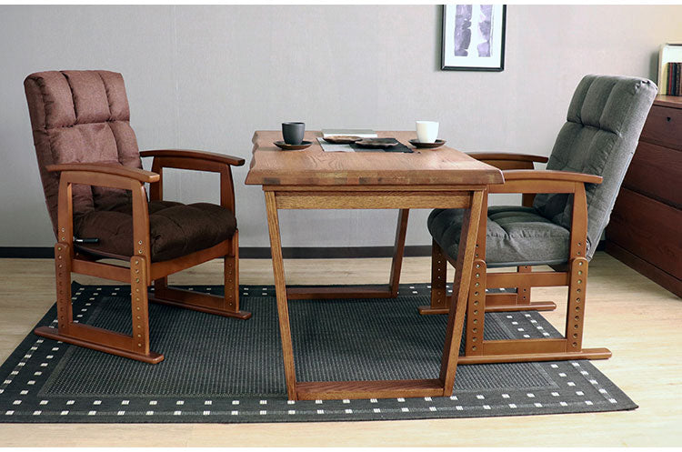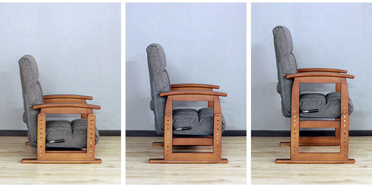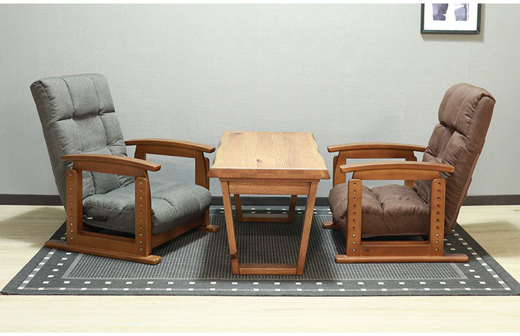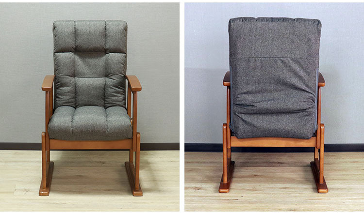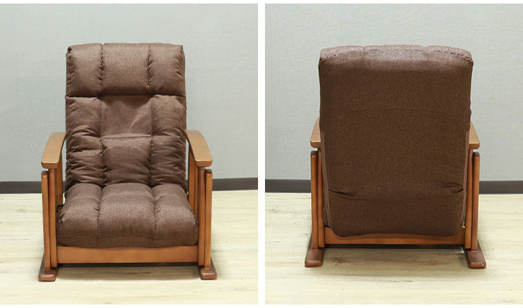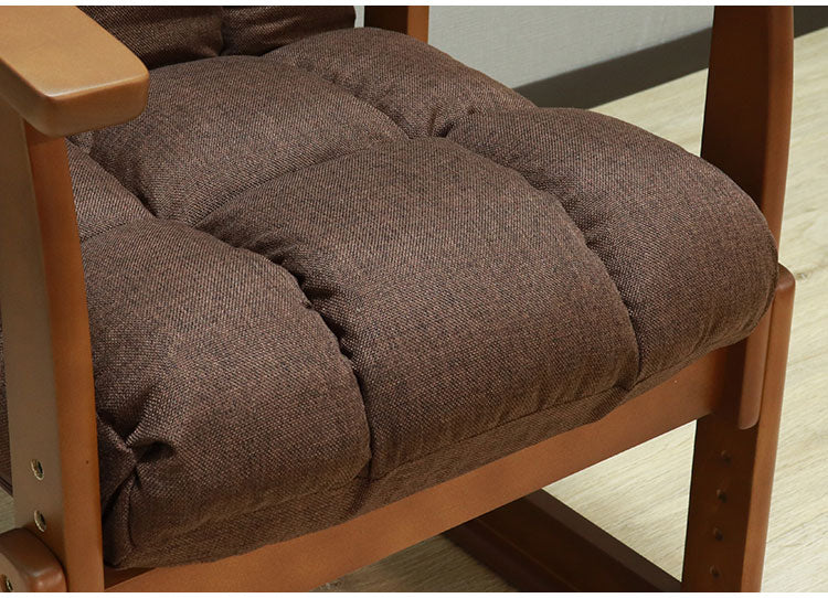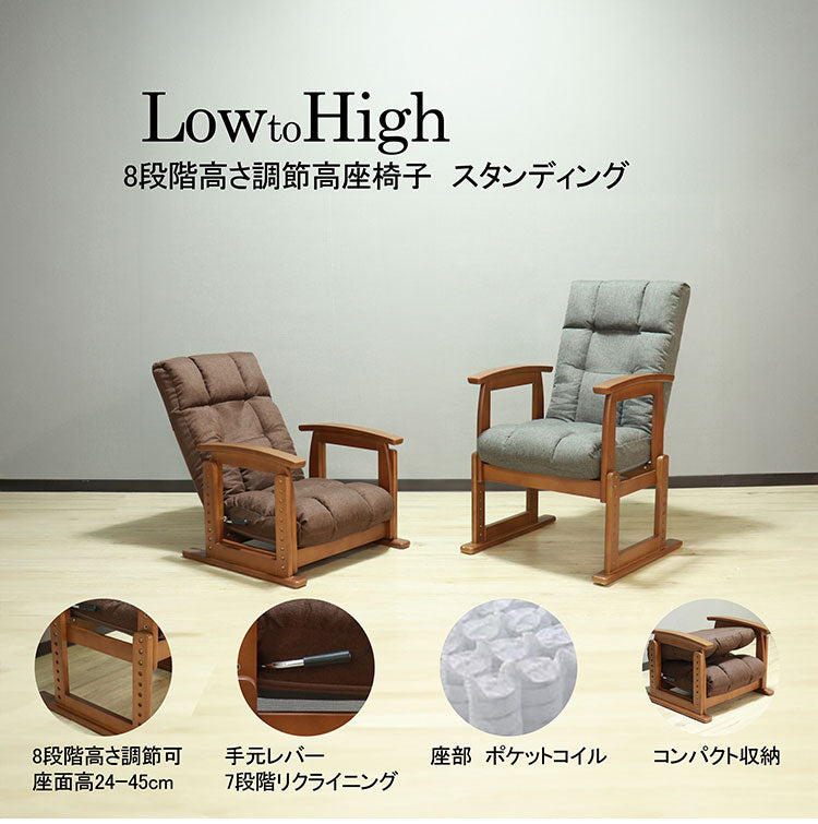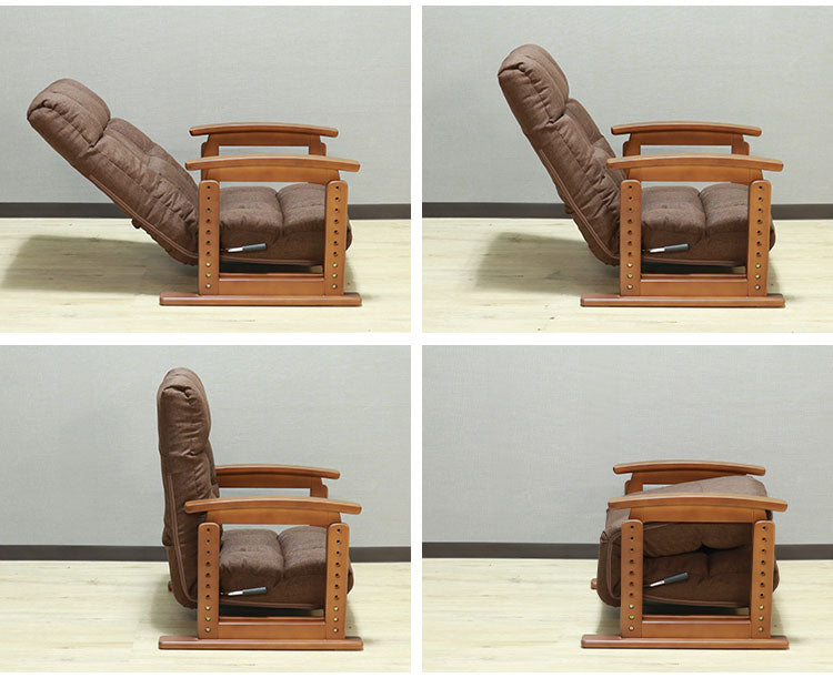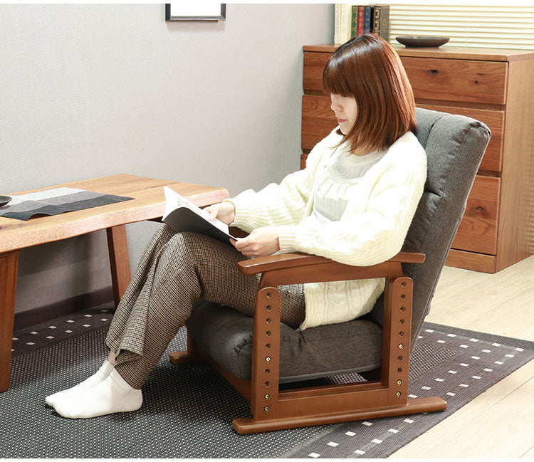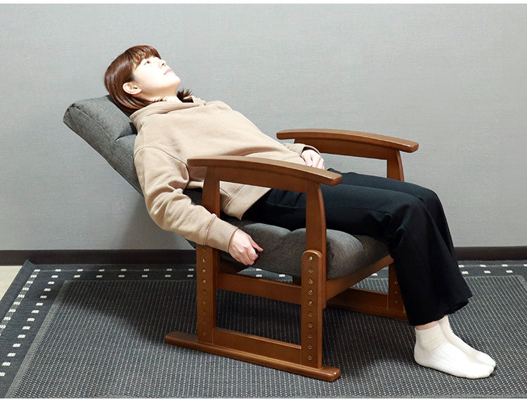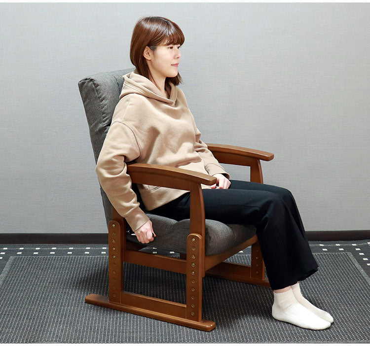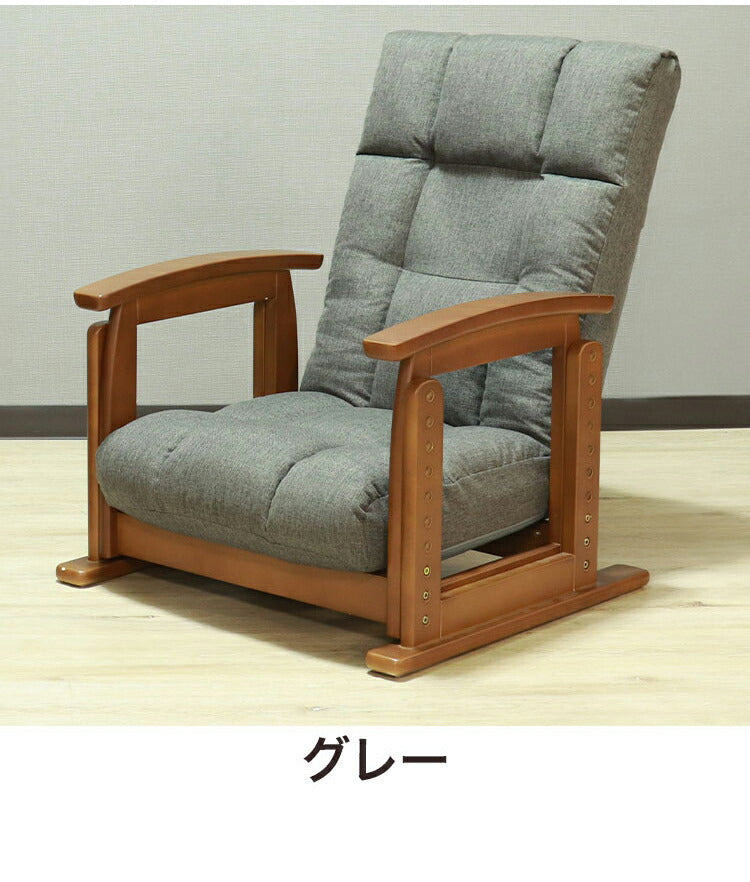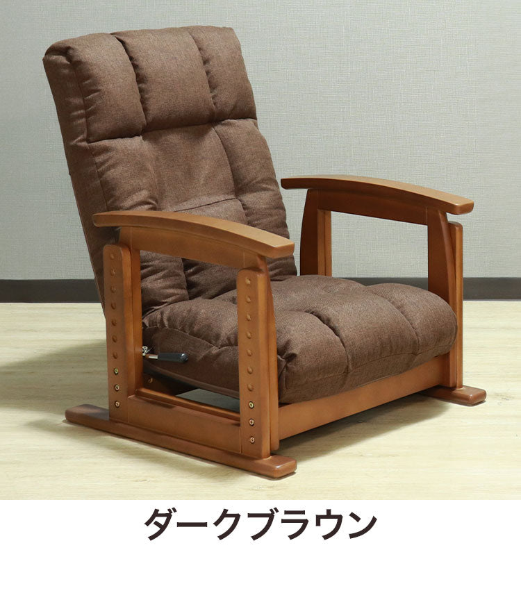 高座椅子 回転式 木肘 7段階リクライニング 座面高 8段高さ調整 座いす 天然木 座イス チェア フロアチェア 1人掛け 肘付き ポケットコイル16個入 ファブリック 布 レバー式 リクライニング(代引不可)