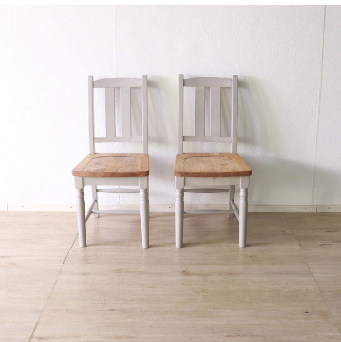 ダイニングチェア2点セット 北欧調 幅40cm 2脚 アンティーク調 完成品 いす グレー ホワイト欧米 パイン材 ダイニング おしゃれ フレンチカントリー 天然木 無垢 木製(代引不可)