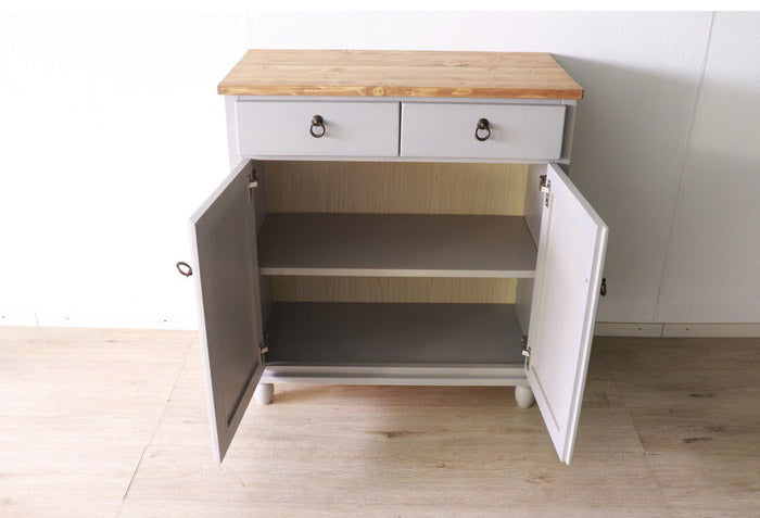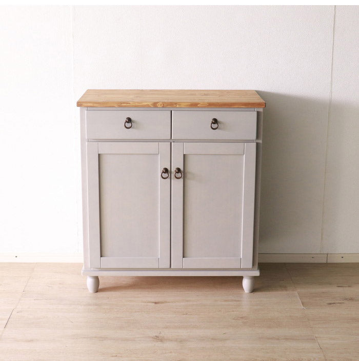 食器棚 北欧調 幅80cm カップボード アンティーク調 組立品 収納棚 ラック キャビネット 収納ボックス グレー ホワイト 欧米 パイン材 ダイニング おしゃれ 天然木 無垢(代引不可)