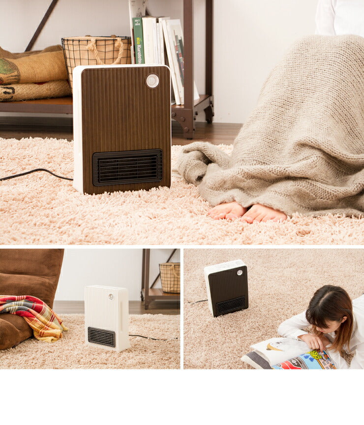 セラミックファンヒーター 2段階(600W/1200W) 人感センサー付 ミニ 小型 スリム コンパクト 足元 暖房