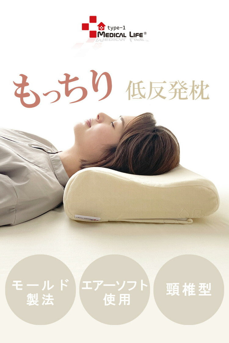 メディカルライフtype-1 低反発 ウレタン まくら 低め モールド製法 ストレートネック 解消 ピロー 低反発枕 整体枕 肩こり 首こり 枕 まくら 健康 快眠 安眠 いびき防止 頸椎 安定 サポート もっちり