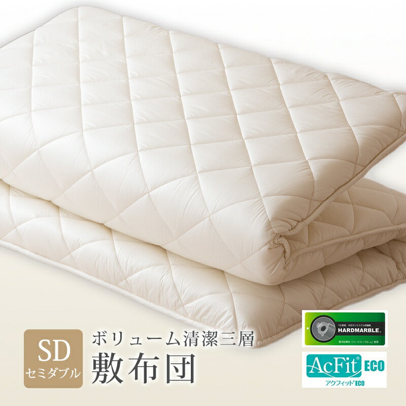 敷布団 セミダブル 極厚 固綿 70mm 日本製 敷き布団 東洋紡 マットレス不要 ハードマーブル 防ダニ・抗菌防臭 三層敷
