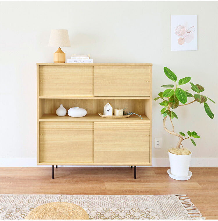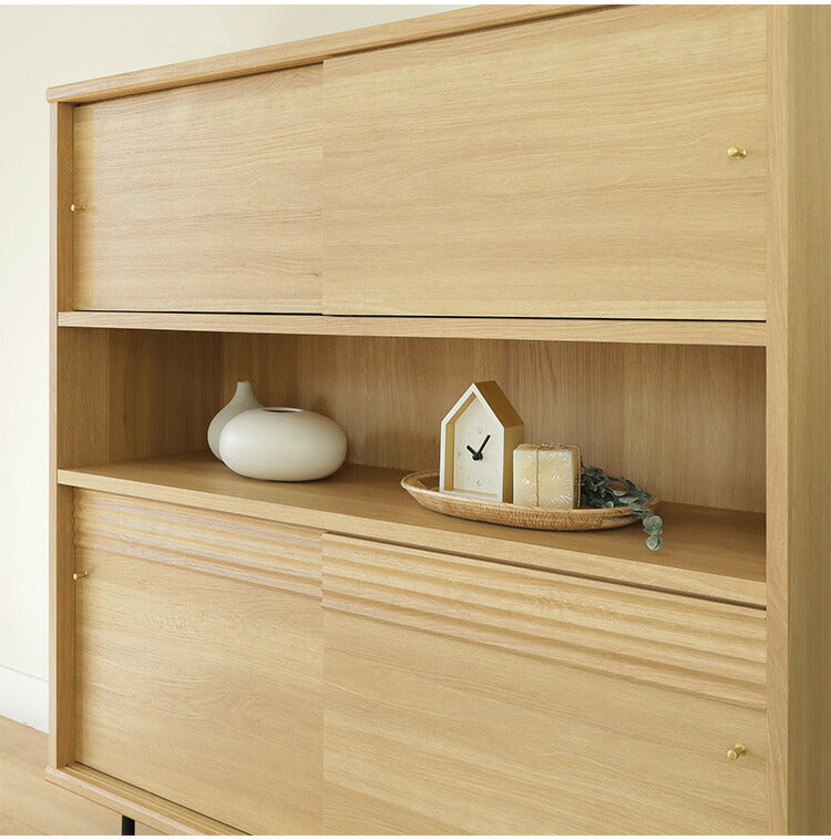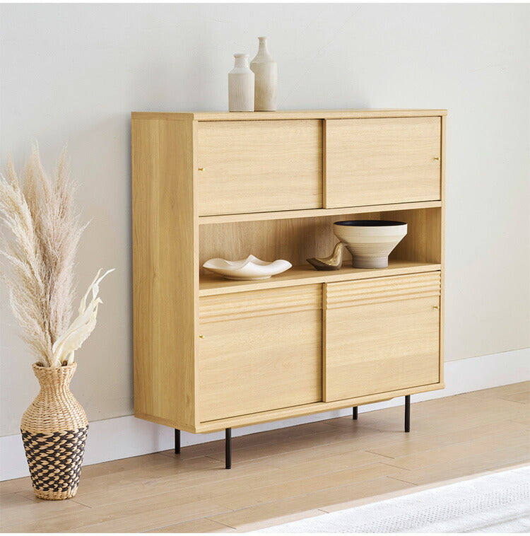 白井産業 キャビネット 棚 幅117cm 高さ118cm ナチュラルブラウン 引き戸 飾り棚 収納 リビング ジャパンディ 北欧 アトモナ