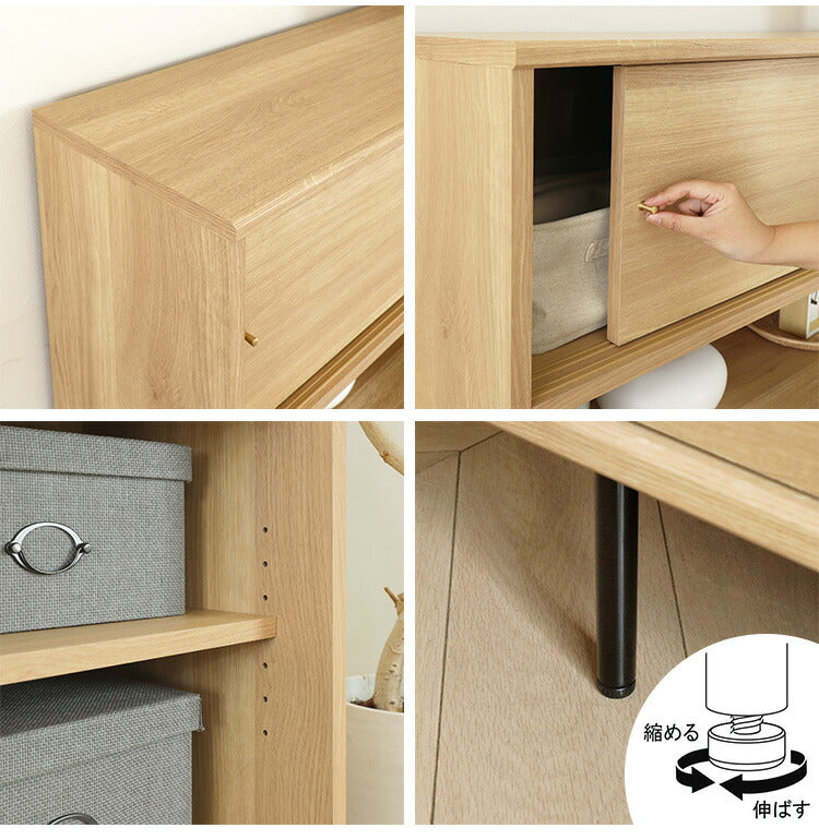下部引き戸内の2枚の棚板は3cm間隔で高さを調節できる移動棚。