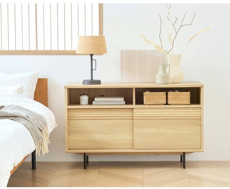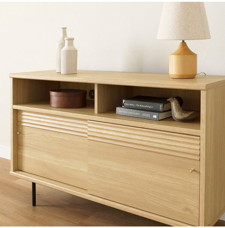 白井産業 キャビネット 棚 幅117cm 高さ72cm ナチュラルブラウン 引き戸 50V型対応 TVボード ミドルボード 収納 リビング ジャパンディ 北欧 アトモナ