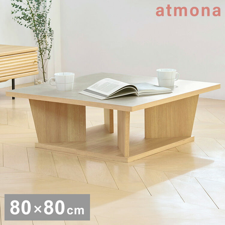 白井産業 テーブル 幅80cm 高さ30cm ナチュラルブラウン 石目調 メラミン天板 収納 リビング ジャパンディ 北欧 アトモナ
