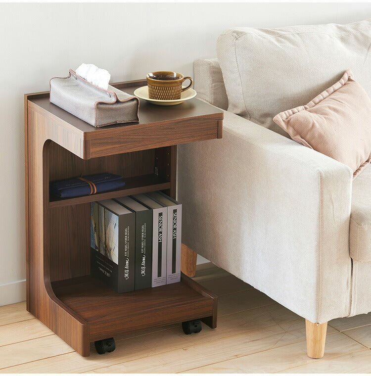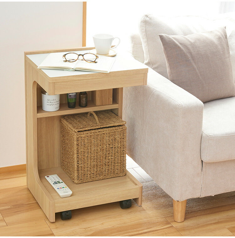 サイドテーブル ナイトテーブル 幅40cm 高さ60cm ソファサイド ベッドサイド キャスター付き メラミン天板 チルフィル CHI-6040W 白井産業 ナチュラル ブラウン