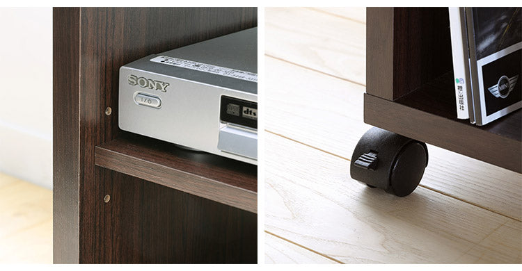キャスターが付いているので、お掃除や模様替えのときに簡単に動かせます。そのうち2つはストッパー付きで固定もできます。